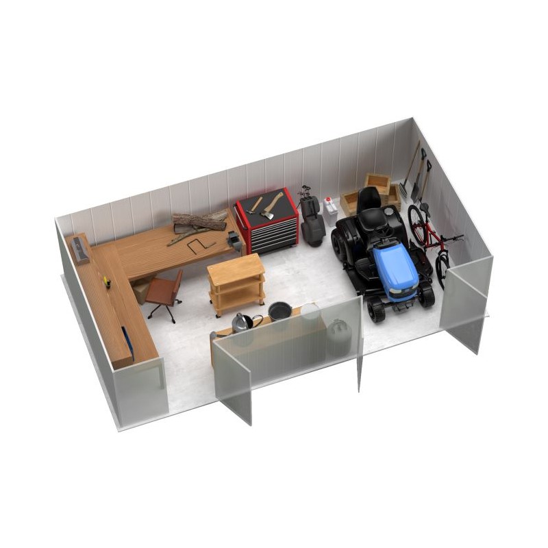 - 1400 cu. ft. of storage capacity provides plenty of room to set up a workbench and house all your gardening equipment and household items