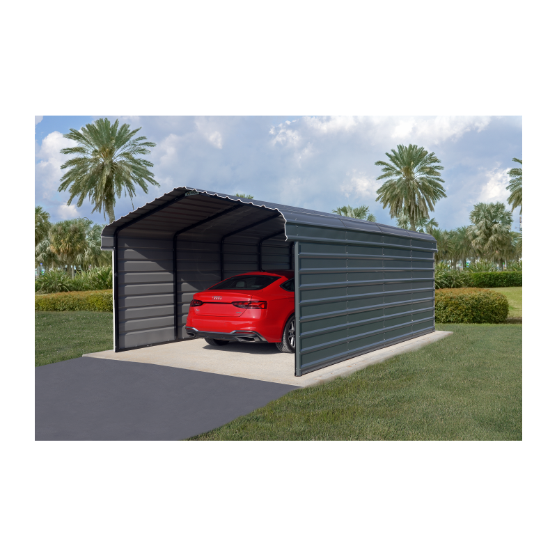 Arrow 3-Sided 12x20x7 Galvanized Steel Carport Kit – Charcoal (CPHC122007ECL3)