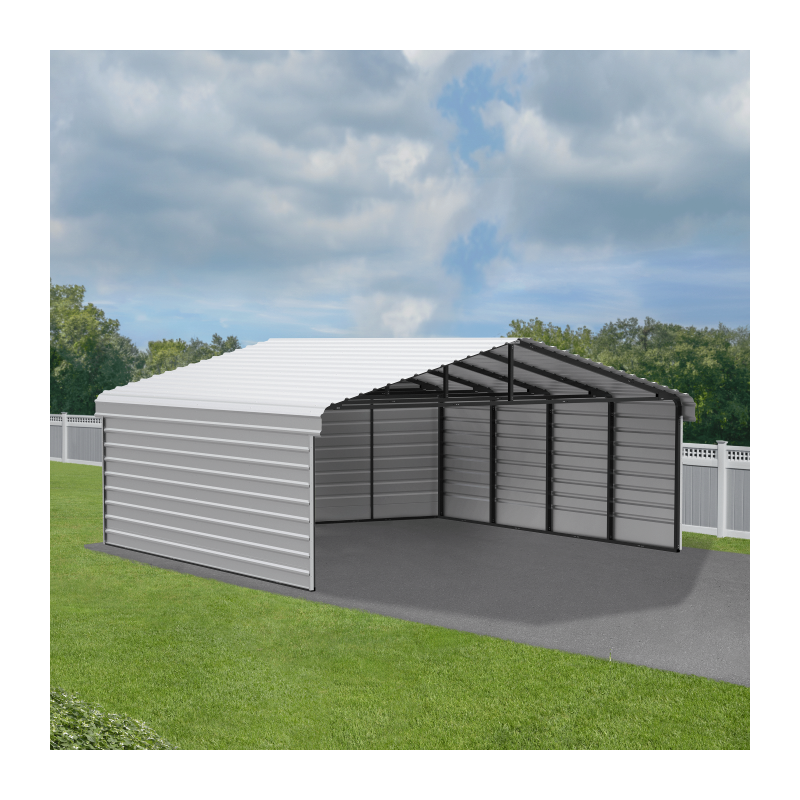 Arrow 3-Sided 20x20x9 Galvanized Steel Carport Kit – Eggshell (CPH202009ECL3)