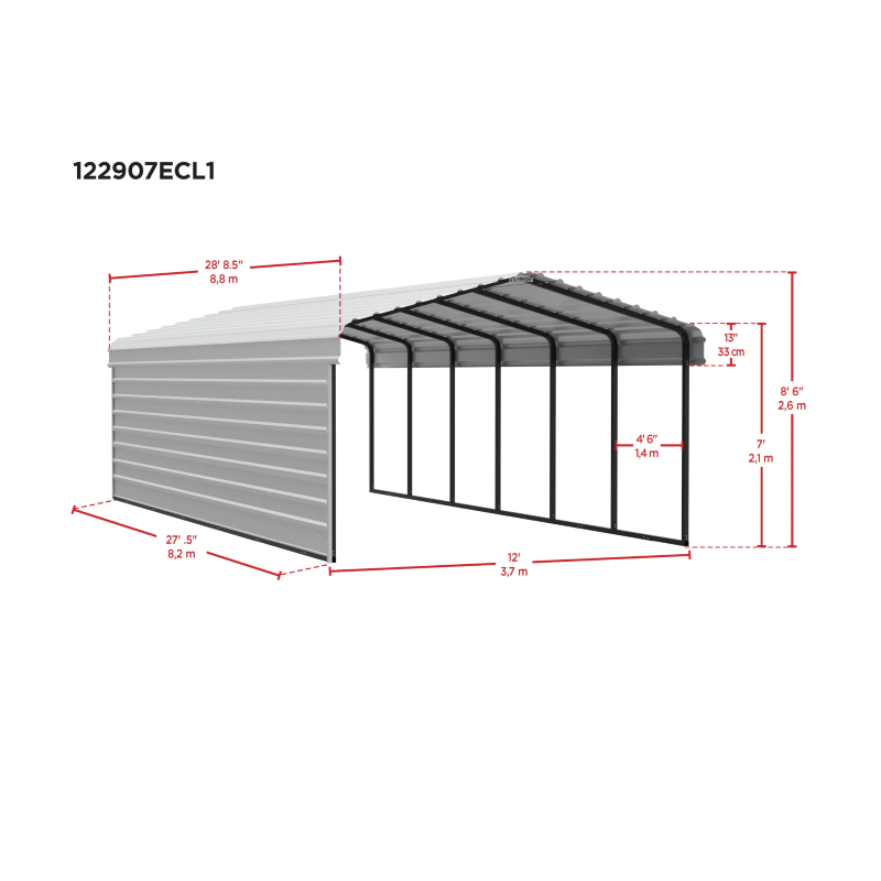 - A heavy-duty 29-gauge galvanized steel sidewall matches the roof and can be attached to the Carport to provide extra protection from the elements