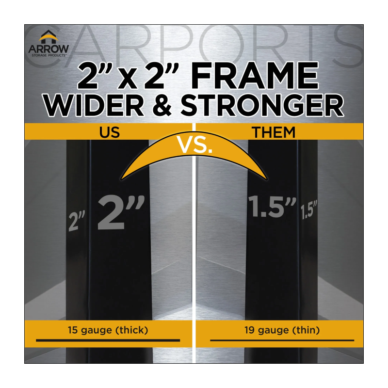 Unveiling the Arrow Carport with Enclosure—an epitome of convenience, versatility, and practicality in the realm of all-weather shade and shelter solutions. Crafted meticulously from robust steel, this carport is not just a structure; it’s a steadfast fortress against the whims of nature, wherever you may require protection. Engineered with a keen eye for durability, each Arrow Carport is snow-load rated, assuring unwavering performance even amidst the most challenging weather conditions. Embrace the assurance of knowing your valuable assets are shielded from the harsh sun, heavy rain, or inclement weather within the confines of this sturdy structure. Whether utilized as a protective shelter for your vehicles, outdoor equipment, or as an inviting retreat for al fresco gatherings, the Arrow Carport with Enclosure epitomizes versatility, ensuring that your outdoor space remains both practical and inviting, regardless of the weather conditions.