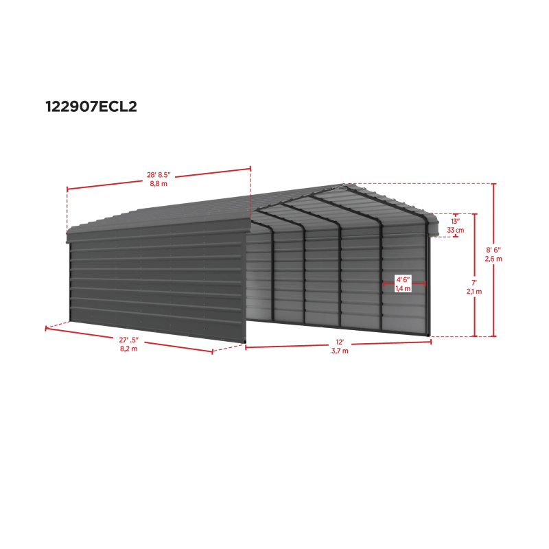 - A heavy-duty 29-gauge galvanized steel sidewall matches the roof and can be attached to the Carport to provide extra protection from the elements