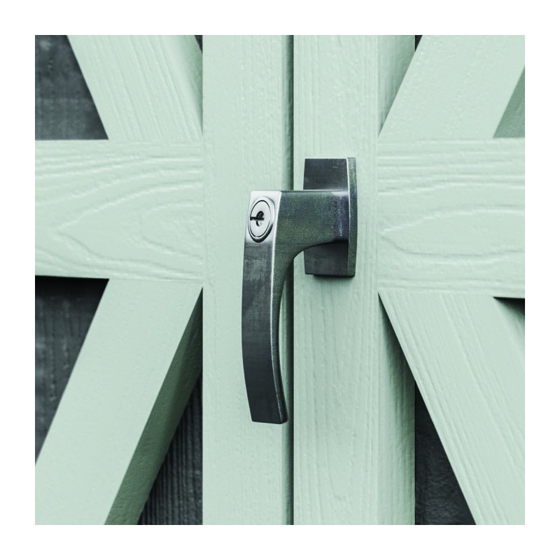 With the Handy Home Rookwood Wood Shed Kit, you will be able to store and organize your tools while improving the general look of your garden. This Do-It-Yourself Wood Shed Kit was designed to radiate modernity its design while paired with exceptional versatility. This features a premium, 2×4 wood framing for ground-to-peak strength and treated, engineered wood siding to resist fungal decay and wood-destroying insects that is perfect for outdoor use! An oversized, pre-hung 5 ft. 4 in. wide by 6 ft. high double doors are mounted on full-length galvanized steel hinges making it easier to store stackable items. With its 7 ft. high side walls and a 9 ft.-6 in. peak. it will provide you a storage capacity unlike any other! The Handy Home Rookwood Wood Shed Kit is Ready-to-Assemble and Pre-cut that can easily be assembled with a hammer, drill/drive, screwdriver, tape measure, level, and a stepladder. Its Adaptive Door Location will also give you the freedom to install your doors on the eave or gable side to achieve your desired look. A premium, rust-resistant, keyed locking handle is included for improved security too! Illustrated instructions, hardware, and limited material warranty included as well, except the Paint, Shingles, and Roof Edge (Gutter).