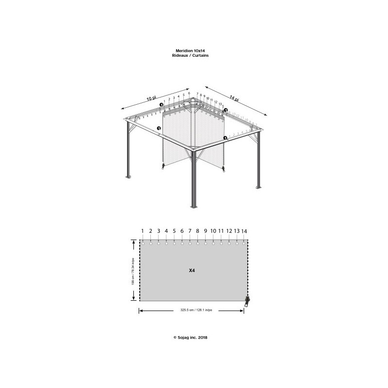 Gathering your family and friends to dine and have a wonderful time is a very important activity to promote camaraderie and improve relationships that is why we always prepare our finest food and beverages and we really put a great amount of effort into decorating the space where we can all get together. So if you have an existing Sojag Meridien 10×14 Gazebo, throw in some flair and style to it by adding our best-selling Sojag 10×14 Polyester Meridien Gazebo Curtains in Grey! This will also help you create a more private space for your family. These summer curtains are the perfect accessory for your sun shelter. Not the same as mosquito netting, these curtains add privacy and shade from the sun on a hot summer day. These are made of grey spun polyester fabric to offer privacy and provide shade from the sun and it also includes hooks to hang the curtains to the structure. Our gazebo curtains meet CPAI-84 fire-retardant international safety standards too! Panels should be removed during the winter. Note: Compatible with the Sojag Meridien 10×14 sun shelter only!